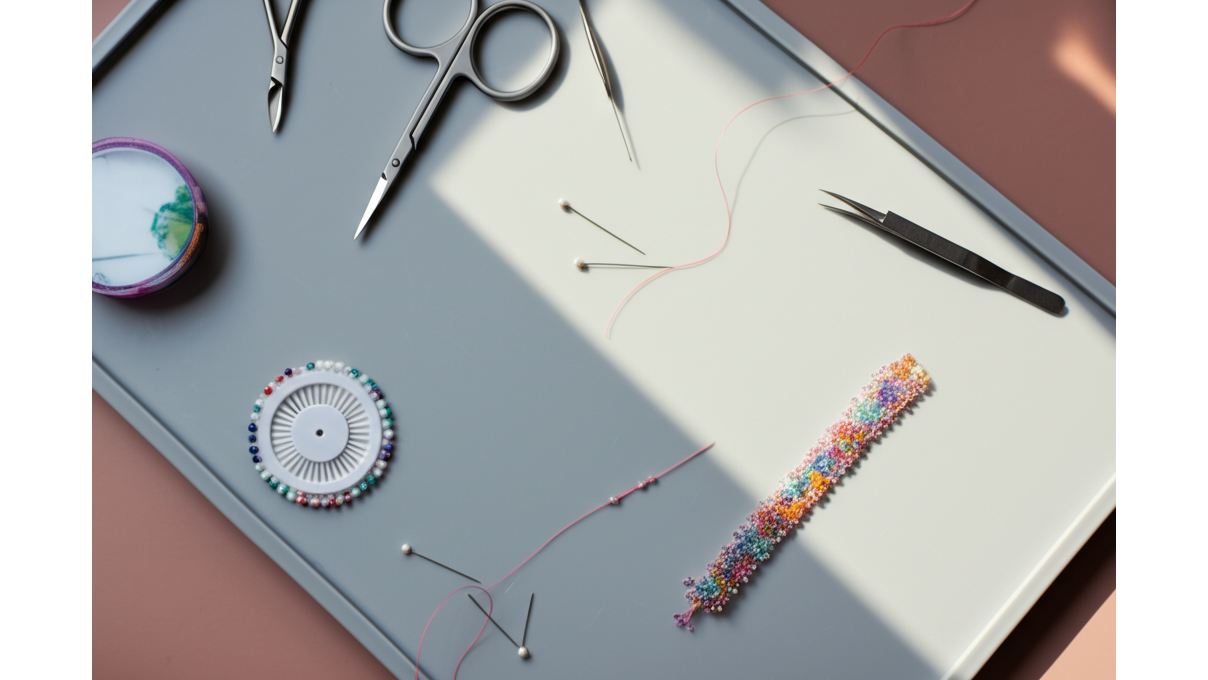 所以,準備一套好用的工具非常重要。 必備工具有剪刀、引線器、珠針、鑷子和工作墊。剪刀要選鋒利的小剪刀,例如德國Wiss指甲剪(約150-300元)。引線器要根據水晶孔徑選擇,小孔選細針引線器(如日本可樂牌,約120元),大孔選粗一點的(如台灣製不鏽鋼,約80元)。如果沒有引線器,可以用魚線代替。珠針用來固定水晶,普通縫紉用的即可(約50-100元/盒),沒有的話可以用迴紋針或膠帶代替,但效果可能差一點。鑷子選尖頭的,方便夾取細小珠子(如德國Rubis美容鑷子,約500-800元)。工作墊則要選防滑的矽膠材質(如台灣製矽膠工作墊,約150元),沒有的話可以用軟木墊或毛巾代替。